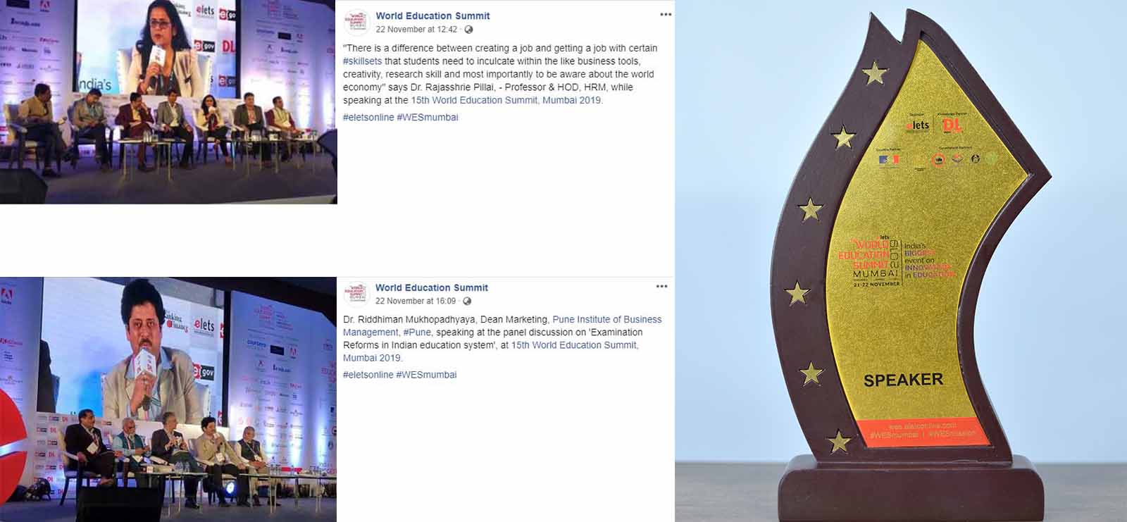 We're honored to share that PIBM was invited to be a part of the 15th World Education Summit held in Mumbai on 21-22 November 2019 where Dr. Rajasshrie Pillai, Dean – HRM & Research, PIBM and Dr. Riddhiman Mukhopadhyay, Dean - Marketing Management, PIBM were active participants in two discussion panels.